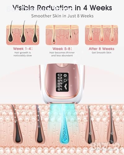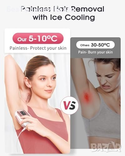 Безболезнено премахване на косъма: Съчетание от IPL и охлаждаща технология за комфортна епилация.