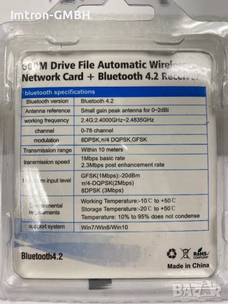 600M Безжична мрежова карта + Bluetooth 4.2 приемник 2-в-1 USB Wifi Bluetooth → Обява 44062805