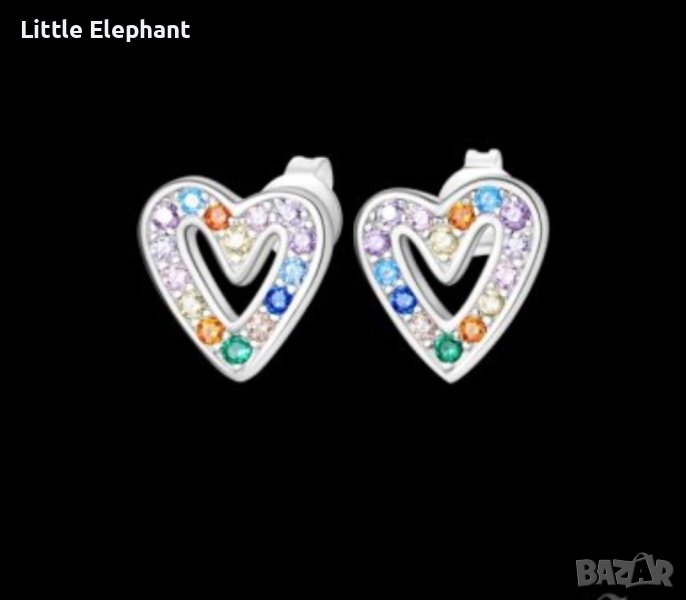 Дизайнерски модел сребърни обеци Пандора сърца с кристали"multicoloured"/нови → Обява 44064982