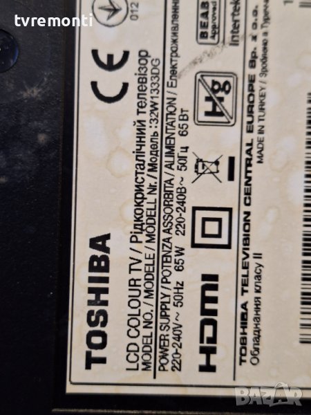 Power Supply 17IPS11 for 32inc DISPLAY VES315WNDL-01 TOSHIBA 32W1333DG борда е гарантирано работещ Демонтиран от телевизор TOSHIBA модел 32W1333DG със счупен дисплей VES315WNDL-01 тесвана от нашия техник