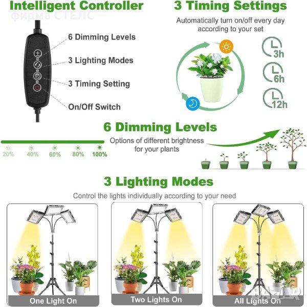 Оборудвана със стабилна, издръжлива стойка - триножник , подходяща за повече домашни растения с различни размери. Широко приложение за сеитба/отглеждане на семейни балкони, градинарство, цветни изложби, саксийни растения, особено високи и големи растения.