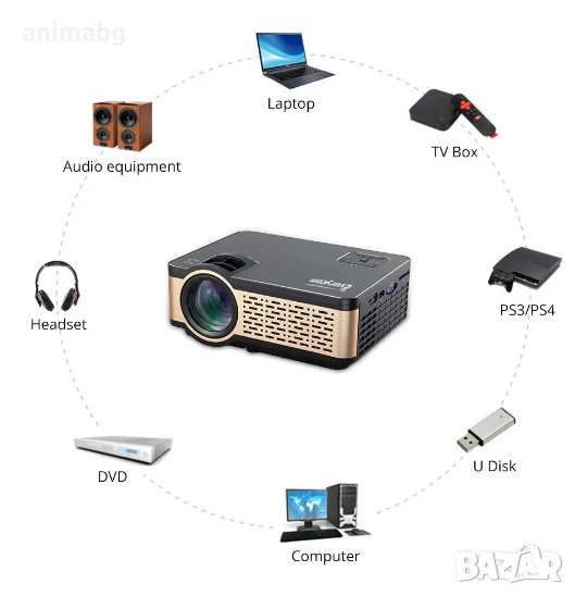 Мултимедиен HD LED проектор с висококачествена картина HD Ready за прожектиране на презентации при бизнес срещи или конференции, прожектиране на филми, игри и др. Проектора разполага с операционна система Android 6.0, което го прави смарт проектор за гледане на YouTube и др.