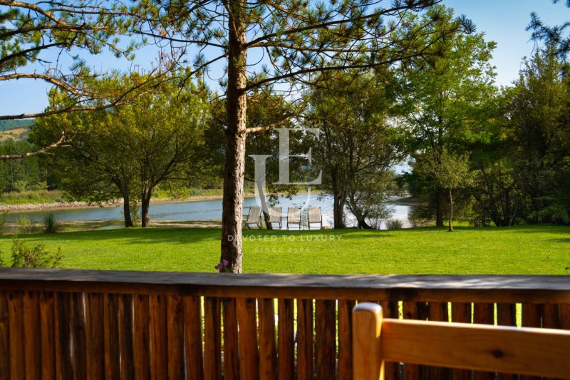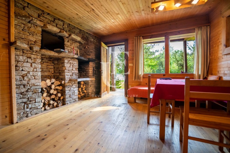 Езерна къща: Построена е на брега на едно от езерата в селището и заграден собствен двор. Къщата е с две самостоятелни стаи с двойни легла и индивидуални бани към всяка от тях. Свързва ги общо помещение с оборудвана кухня и трапезария с пейка/легло. Голямата камина придава допълнителен комфорт и чар. Обща площ - 65m? Пред къщата има веранда с прекрасен изглед към езерото и планините в околността. На поляната пред къщата са разположени шезлонги, както и обособени зони за почивка. Ref. ID:17365