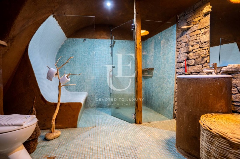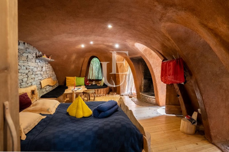 Някои я оприличават на къщата на тролове и каменни великани, други на потайни горски същества, но едно е сигурно, когато сте в нея, сте в омайна приказка от вашето детство! Разпределение: общо пространство със спалня, маса с обособен кът за сядане, камина, баня с тоалетна, обща площ - 40m?
