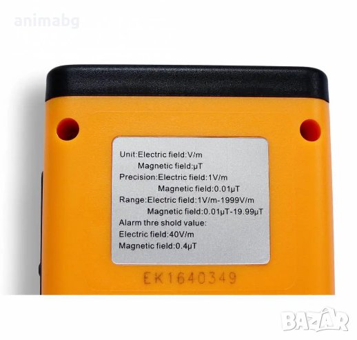 С този уред можете да измерите силата на електромагнитното лъчение на заобикалящата ви среда.Уредът НЕ е гайгеров брояч за измерване на фотони, алфа-частици, бета и гама-лъчи.Той измерва излъчващата радиация от битовата и промишлената техника (компютри, трансформатори, антени, мобилен телефон, телевизори, копирни машини и други).Работи с батерия 9V PP3.