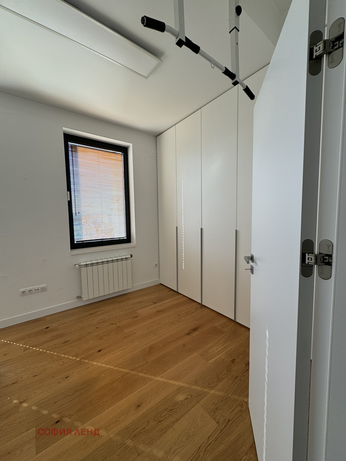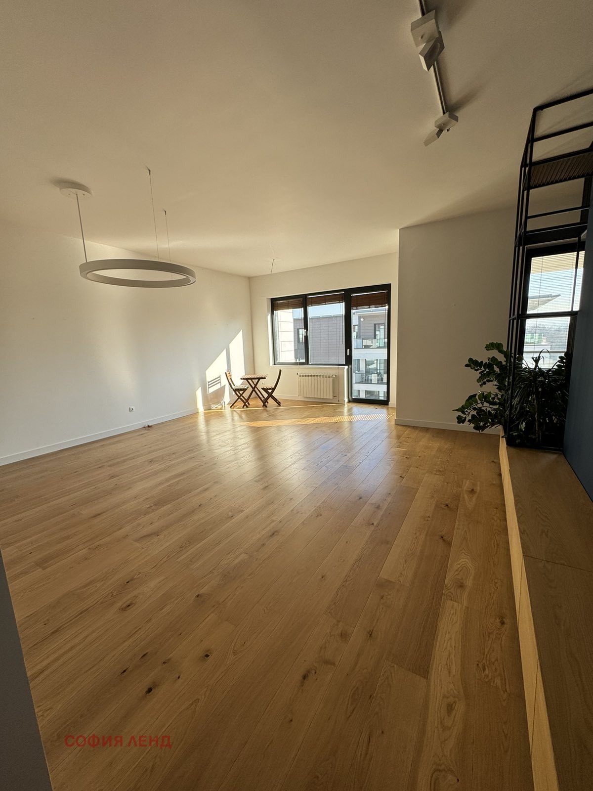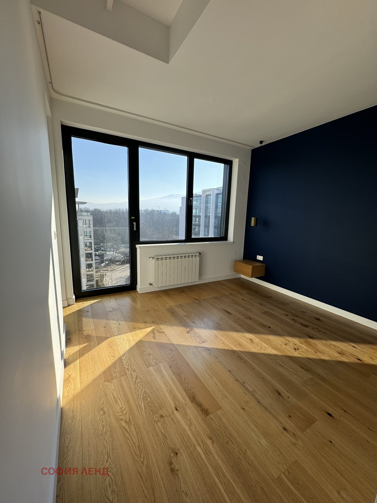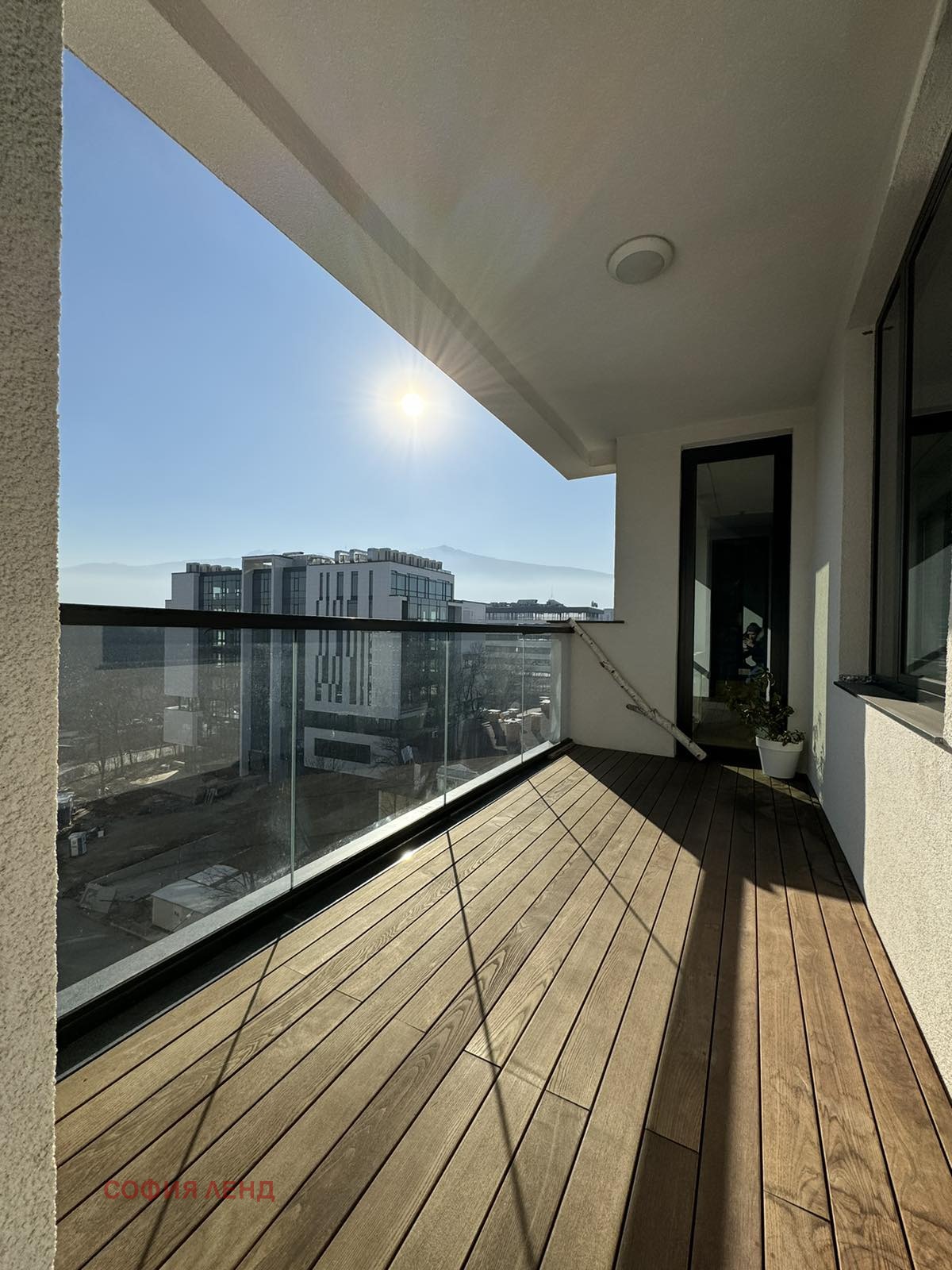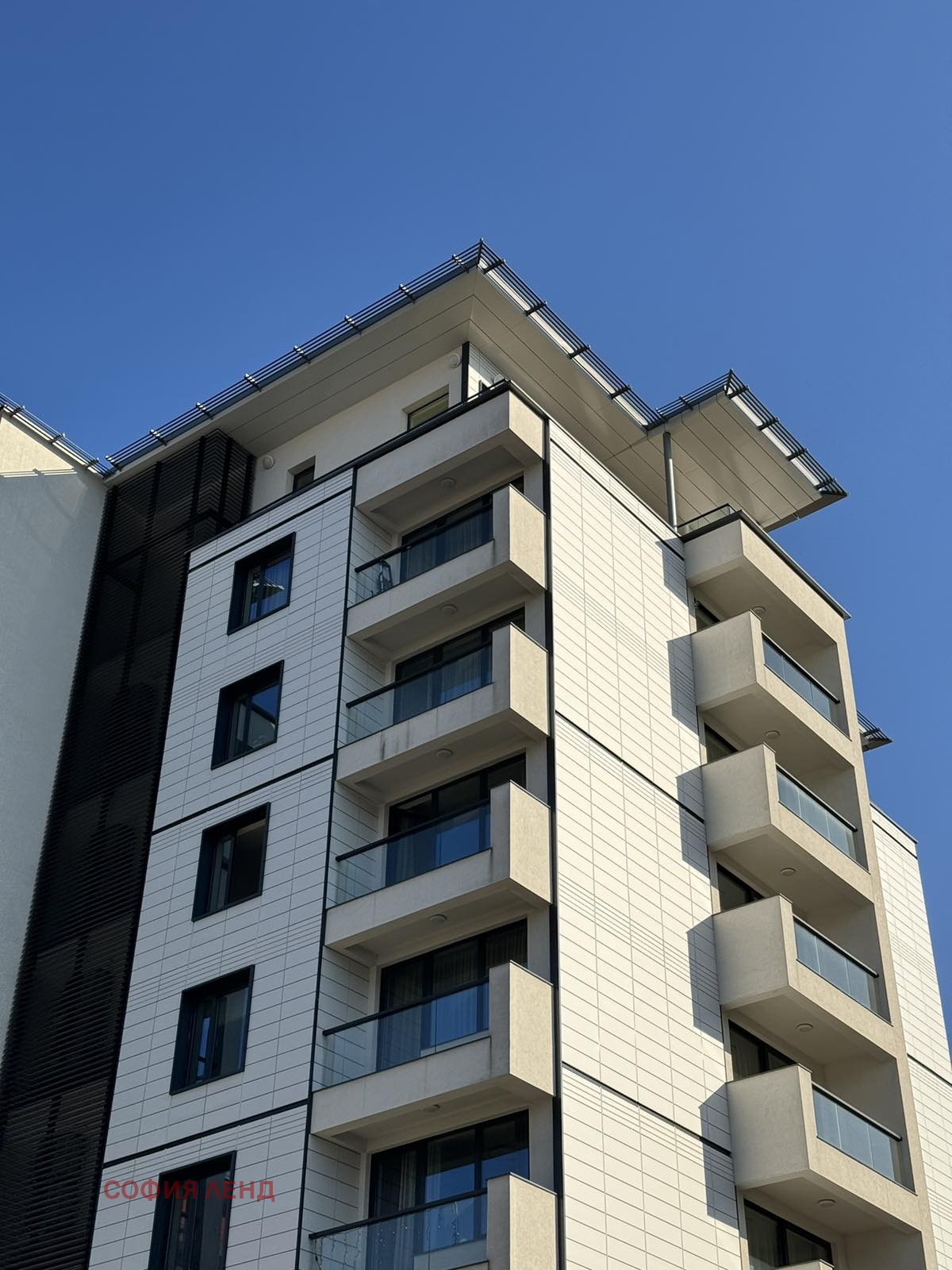 Продава се тристаен южен апартамент на висок етаж с настилки, осветление, гардероби, кухня и бани в затворен комплекс 'София Ленд Резиденс'. Жилището е с гледка към планината Витоша, с тавани над 3 метра и се състои от антре, коридор, дневна, кухня, две спални, две бани с тоалетни и мокро помещение, дрешник и тераса с декинг. Апартаментът е с алуминиеви радиатори, свързани към централен ТЕЦ, както и с климатици Mitsubishi Heavy Industries , монитрани във всяко едно помещение с външно тяло, изведено в отделно пространство пред стълбищната клетка на сградата. Дограмата е алуминиева на 'Schuco', а входната врата е с италиански дизайн и произход. Застроена площ в квадратни метри 128.50, общи части в квадратни метри 19.88,обща площ на жилището в квадратни метри - 148.38.Предлага се с електрифицирано подземно паркомясто с допълнителна цена от 50 000 евро с ДДС.