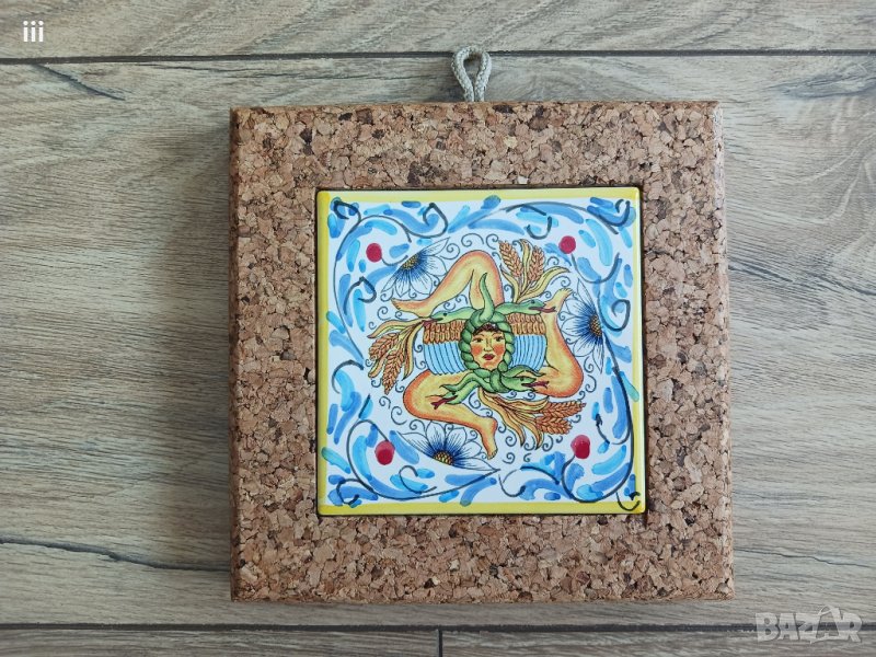 8. Сувенир от Сицилия: размер 15,7см*15,7см. Плочката с Трискелион е с размири 10*10 см. Нов. Цена 30 лв.