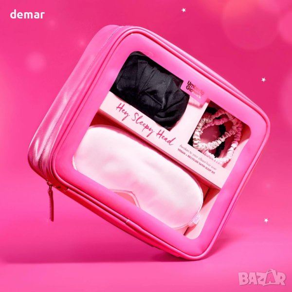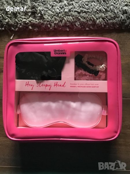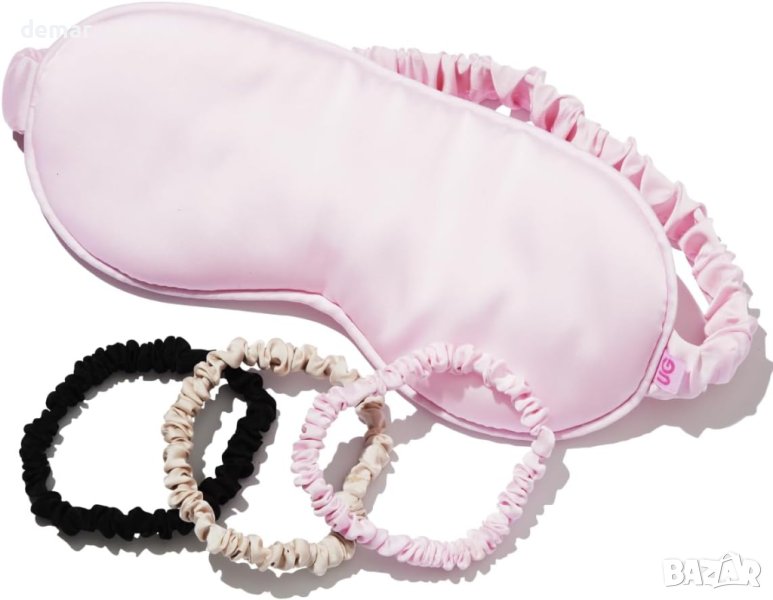 Umberto Giannini веган копринена черна обвивка за коса, розова маска за очи и 3 връзки за коса