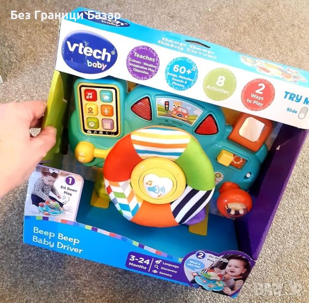 Нова Развиваща Играчка VTech - Бебешко Шофьорско Колело с Музика