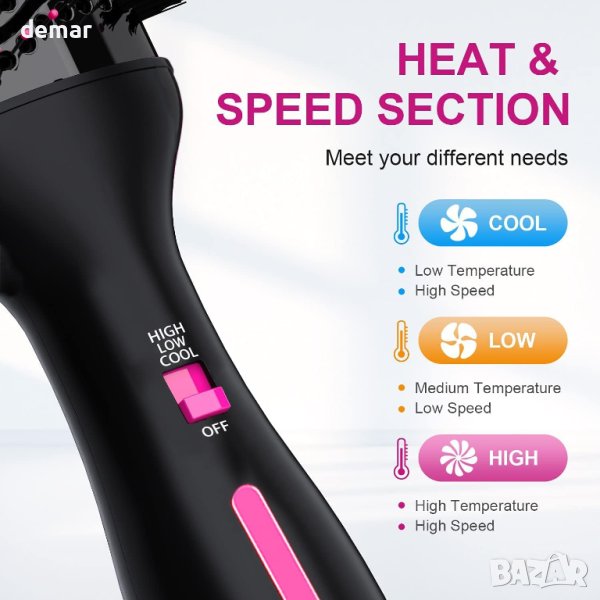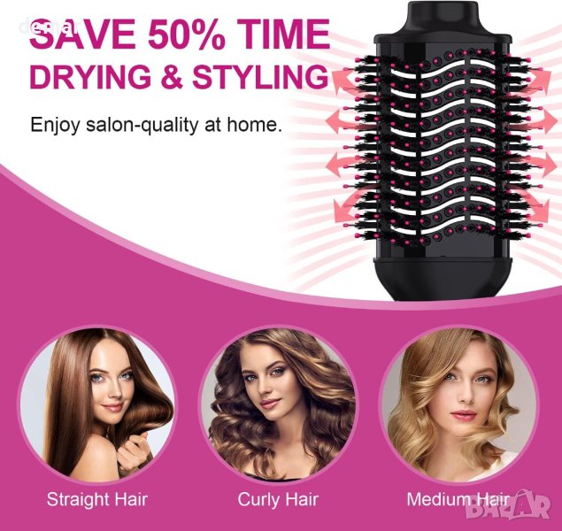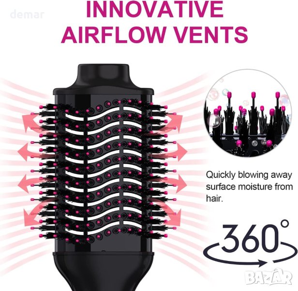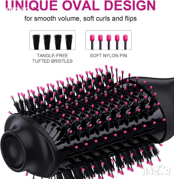 Революционизирайте своята рутинна прическа с тази усъвършенствана четка за сешоар с йонна технология, проектирана да заключва влагата, да намалява накъдрянето и да подобрява блясъка със своя йонен генератор и 360° отвори за въздушен поток. Корпусът с керамично покритие минимизира топлинните щети, докато найлоновите щифтове и туфтираните четки се справят със заплитането, насърчавайки по-гладка и блестяща коса. Овалната му форма придава обем, а уникалният дизайн позволява по-близък достъп до скалпа. С 3 настройки за топлина/скорост, включително опция за охлаждане, той се грижи за различни типове коса с мощен 1000 W мотор за ефективно сушене. Този универсален инструмент 3 в 1 съчетава възможности за сушене, оформяне, изправяне и къдрене, осигурявайки резултати с качество на салона бързо и удобно у дома.
