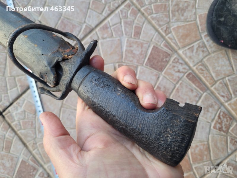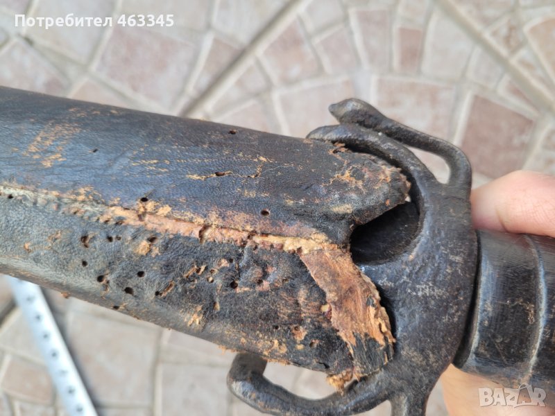 Старинна нимча от 18-ти век. Дървена дръжка, без дървояд. Железните части имат ръждица. Острието е с отлична патина, непочиствано. Канията е с оригиналната си кожа, която е също в доста добро за времето си състояние. По канията към ефеса на нимчата има малко дървояд, който е засегнал и кожата.