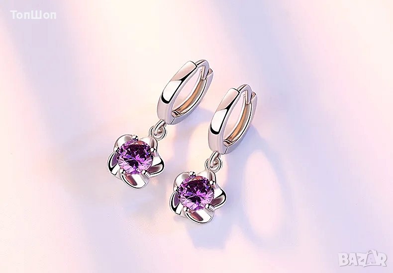 Сребърни обеци халки с виолетов кристал → Обява 44069377
