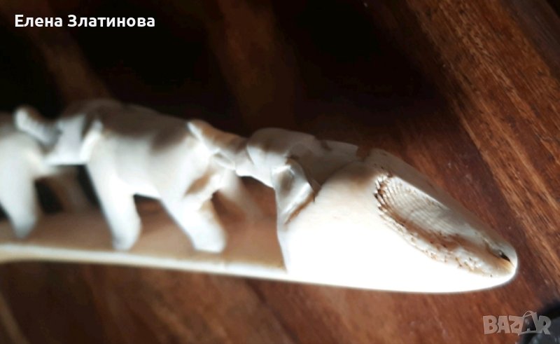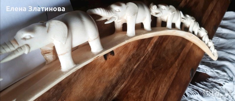 Бивник слонова костфино издълбан бивник от слонова кост представлява линия от слонове.Тегло 1175 грамаДължина 79 смПридобит по наследство1900 година