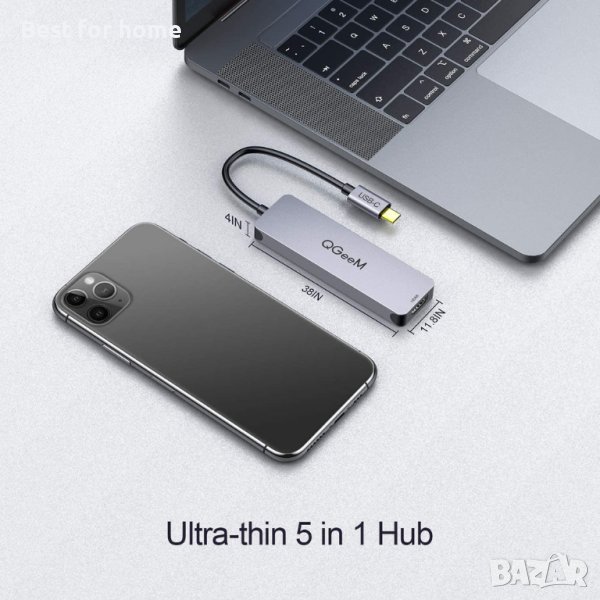 5-в-1 HDMI USB-C хъб: Разширете вашия лаптоп от usb c порт до един 4K HDMI порт, един USB 3.0 порт, един USB 2.0 порт, един четец на SD карти и един четец на TF карти. Plug & Play, Не е необходим допълнителен драйвер.