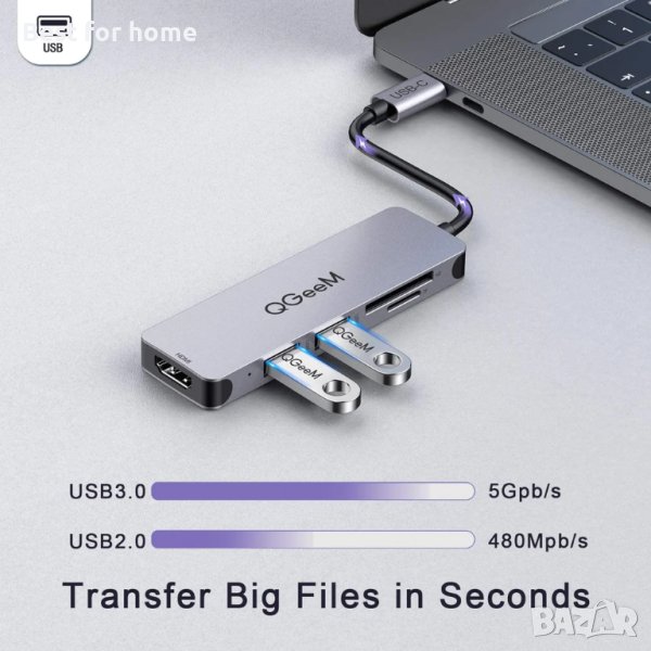 QGEEM USB C КЪМ HDMI АДАПТЕР С 4K HDMI, 1 ПОРТ USB 3.0, SD TF ЧЕТЕЦ НА КАРТИ