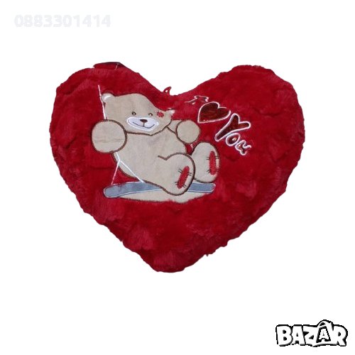 Очарователна подаръчна идея! Музикална плюшена възглавничка "Сърце с мече - I Love You" (Размер: 35см/42см).