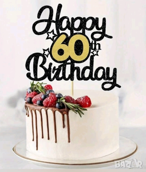 Hello 18 30 50 60 години юбилей златно черен брокатен картонен топер украса за торта рожден ден → Обява 44071998