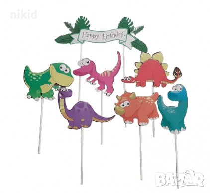 динозаври Динозавър Happy Birthday картонени топери топер украса декор за торта мъфини кексчета → Обява 44072058