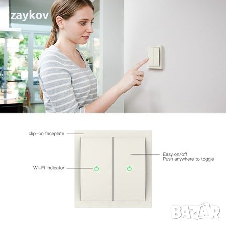 Дизайнът с два превключвателя ви позволява да контролирате две свързани светлини едновременно с един интелигентен ключ.