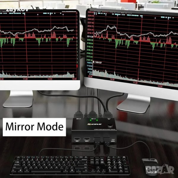 Размер KVM превключвател 2 монитора 2*HDMI USB2.0