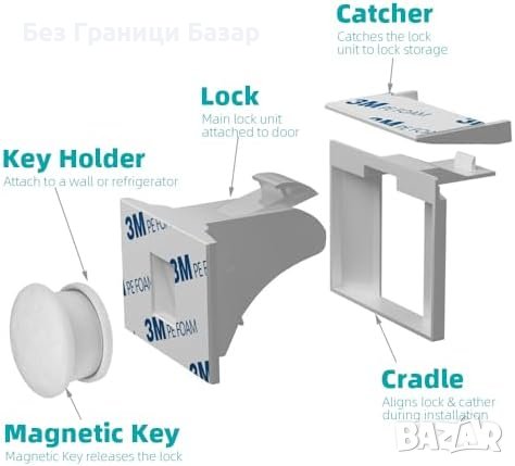 Заключване за Шкафове и Чекмеджета: 10 броя детски магнитни заключвания Lychico + 2 ключа.