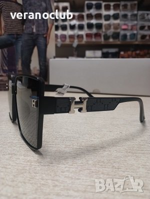 Дамски слънчеви очила с поляризация и УВ защита в модерна и актуална форма. Рамките са в черен цвят. Изработени са от олекотена пластмаса с гравирани елементи и малко лого. Формата на тези слънчеви очила за жени е почти квадратна и е съобразена с новите модни тенденции.