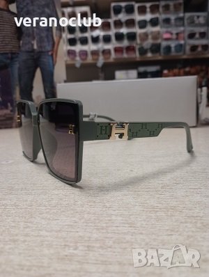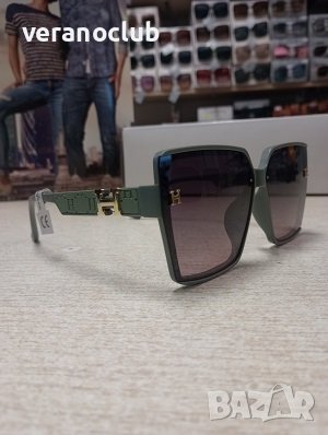 Дамски слънчеви очила с поляризация и УВ защита в модерна и актуална форма. Рамките са в зелен пастелен цвят. Изработени са от олекотена пластмаса с гравирани елементи и малко лого. Формата на тези слънчеви очила за жени е почти квадратна и е съобразена с новите модни тенденции.