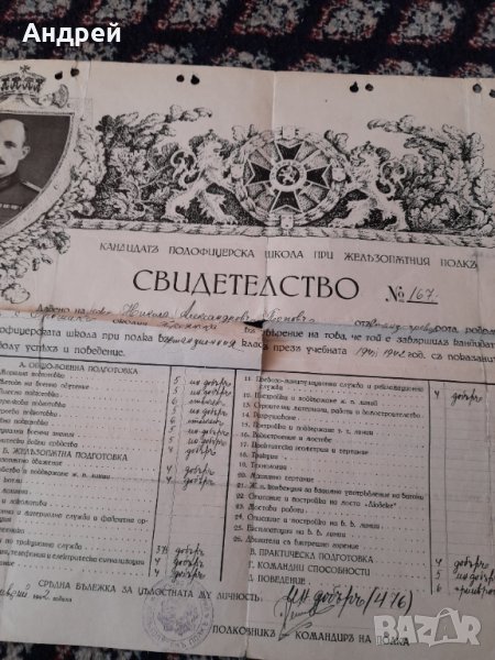 Свидетелство за завършена Подофицерска школа при ЖП Полк → Обява 44082601