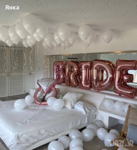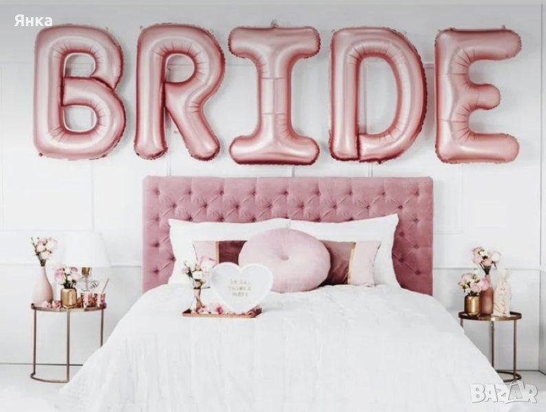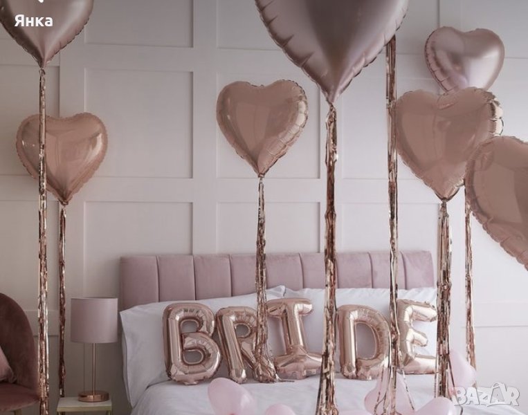 Балони с надпис BRIDE, в цвят- розово злато (rose gold). Дължина на буквата- 41см.
