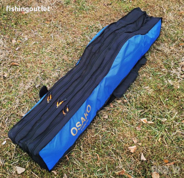 Висок клас рибарски калъф Осако с 3 отеления, подходящ за събирането на до 6 въдици с макари . Изключително здрав, подплатен , широк и водонепромукаем .