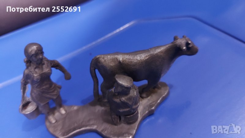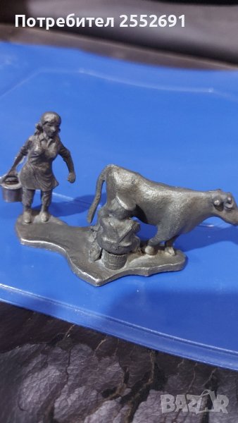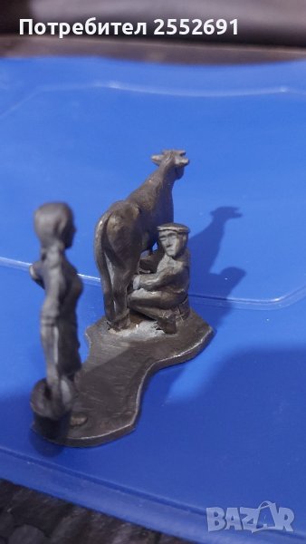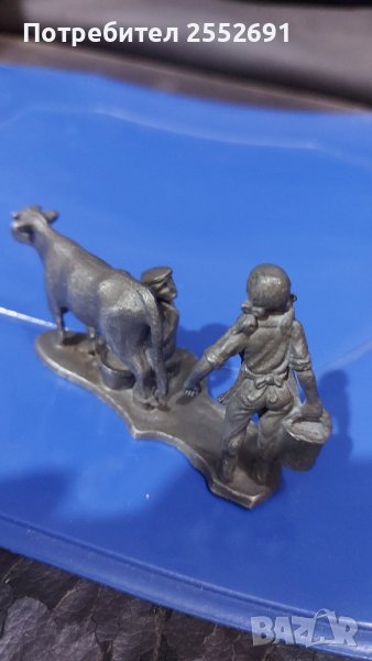Много рядко срещана метална/калаена/ композиция от три фигури. Наличие на фирмен знак " PEWTER TIN ETAIN ZINN" 94% Размери- 10/4,5/3,5см.
