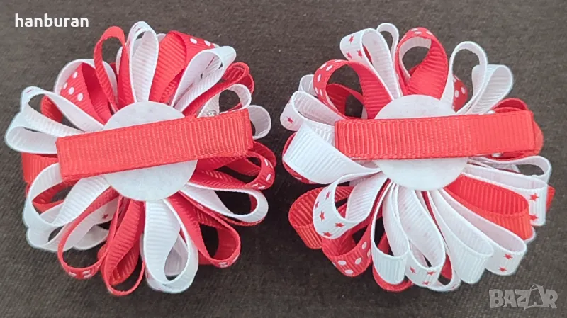Страхотни панделки за коса. Захващат се с фиба. Диаметър - 7см. Цена е за комплект от два броя.