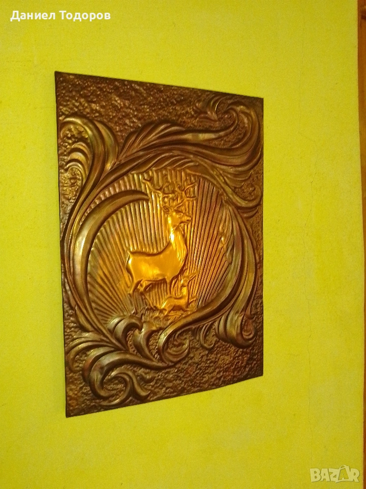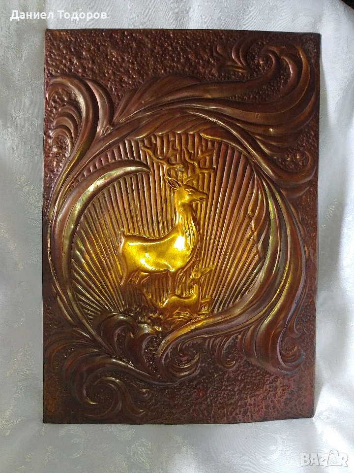 Стара Медна Декоративна Картина , Медно Пано - Елен → Обява 44086076
