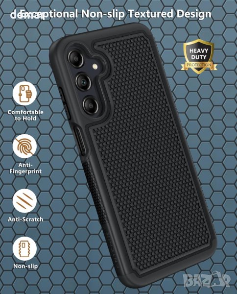 Този калъф за Samsung Galaxy A25 предлага 360-градусова защита на цялото тяло с издръжлив хибриден дизайн, съчетаващ здрава външна обвивка на компютър с мек вътрешен слой TPU за устойчивост на удар и абсорбиране на удар. Той разполага с противоплъзгащ, абсорбиращ потта модел на пчелна пита за захващане, устойчив на надраскване повдигнат панел за защита на екрана и камерата и прецизни изрези за функционалност. Включва HD закален стъклен протектор на екрана