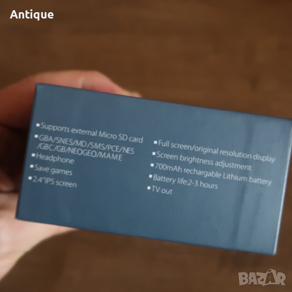 Чисто нова ретро конзола Bittboy, версия 3.5. Подкарва Neo Geo/GBA/GB/GBC/NES/SFC/ MD/FC/PS1 емулатори, като може да запазвате и да зареждате прогреса на играта, така че няма нужда започвате всеки път от начало. Разполага с вибрация и поддържа огромно количество игри от едно време.