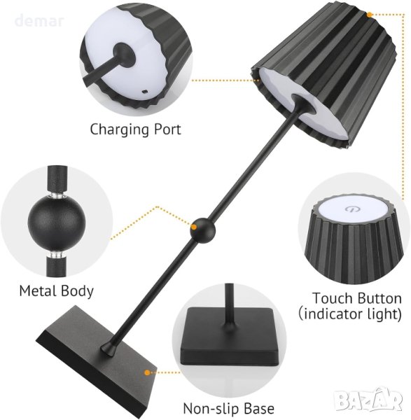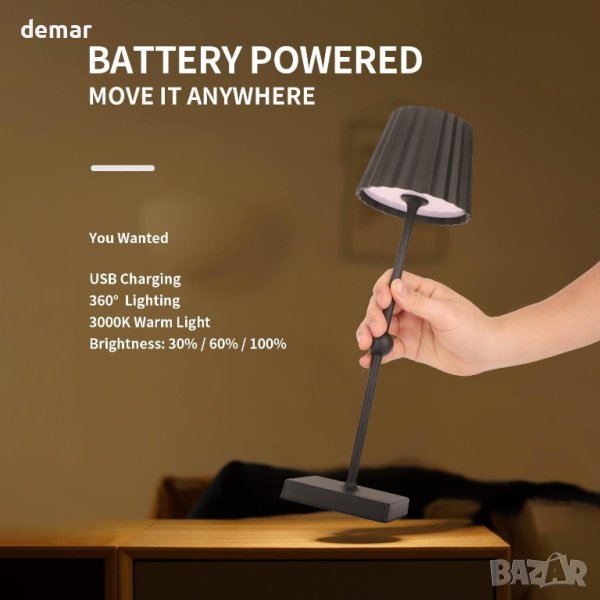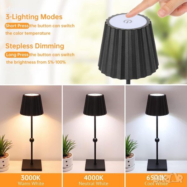 TONGLIN Безжична настолна лампа, 5200mAh акумулаторна LED сензорна черна