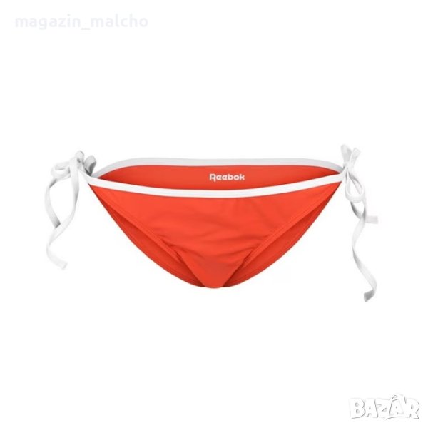 Покажете стил на плажа с дамски бански Reebok. Покажете стил на плажа с дамски бански Reebok. Това е бански от Reebok и се състои от горнище и долнище. Горнището е изработено със закопчаване, чрез връзка на гърба и врата. Долнището се отличава с еластична лента на талията, закопчаване с връзки и тонални шевове. И двете части в този комплект са с изцяло принтиран дизайн с фирмено лого и са допълнени с брандиране на Reebok.