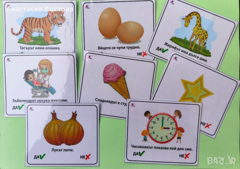 Предлагам ви интересни карти по Монтесори с твърдения, на които се отговаря с да и не. Картите са 60 броя, цветни, ламинирани и компактни. Цената за комплект е 22лв