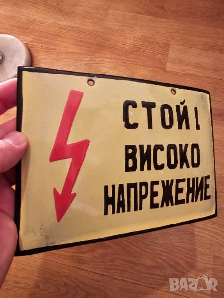 Рядка стара емайлирана табела СТОЙ ВИСОКО НАПРЕЖЕНИЕ от 80те - за вашета фирма, цех или колекция