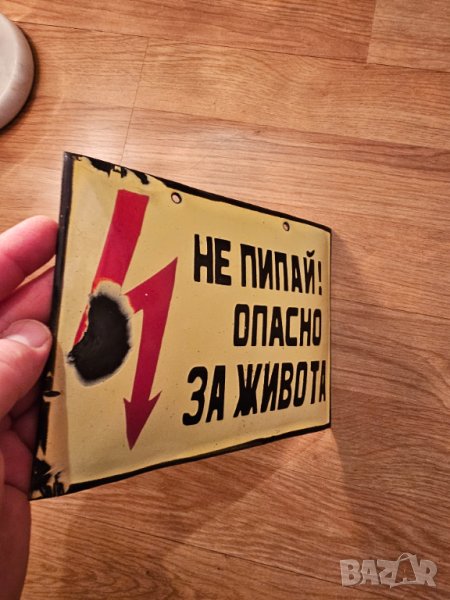 Рядка стара емайлирана табела НЕ ПИПАЙ ! ОПАСНО ЗА ЖИВОТА от 80те - за вашета фирма, цех или колекц