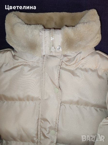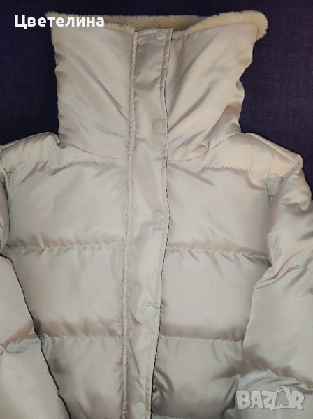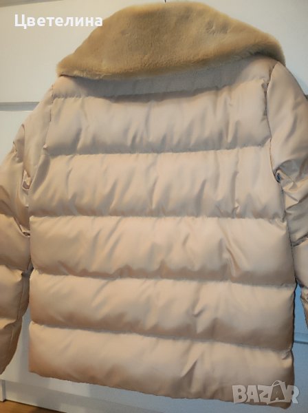 Якето е с пухена яка,която може да се вдига до горе.
