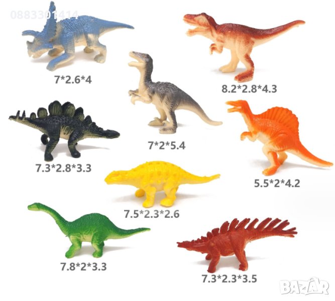 Комплект от 4 броя фигурки на динозаври, които са изработени от безопасни материали и идват с различни форми, размери и видове.