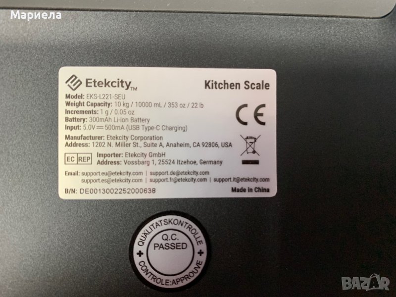 Кухненската везна е нова и е внос от Германия .