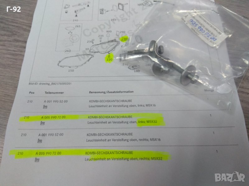 A0059907200**NEU**MERCEDES-BENZ**W212**W218**БОЛТ СПЕСИАЛЕН ЗА МОНТАЖ НА ФАРА