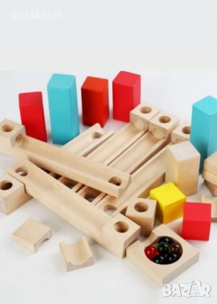 - Конструирайте сами забавна дървена писта и се наслаждавайте как стъклените топчета се състезават по нея. Тази образователна игра ще спомогне за когнитивното и физическото развитие на всяко дете по един невероятно забавен начин!