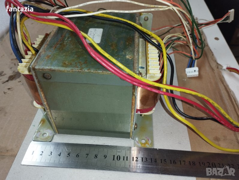 Продавам огромен трансформатор, демонтиран от ресивър Harman kardon, с вторични напрежения 40/0/40 V, 37.5/0/37.5V , и с по - малка мощност 18-0-18, 11-0-11V, 27V Размери на магнитопровода 112*100*90мм, сечение на магнитопровода около 90*37 около 33кв.см, мощност около 800VA.