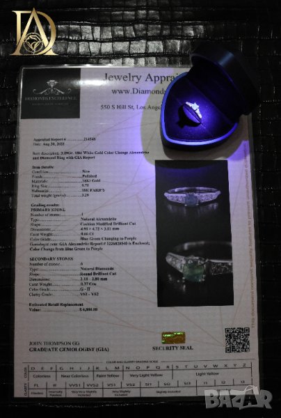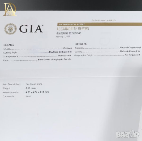 * Александрита има собствен сертификат, сертифициран от GIA