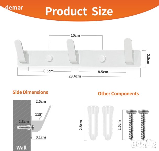 Закупено от Amazon: www.amazon.co.uk/Sevenpers-Coat-Hooks-Mounted-White/dp/B0C54RM5XJ/ref=sr_1_5?keywords=Coat+Hooks+Wall+Mounted+3+Hooks+White&sr=8-5