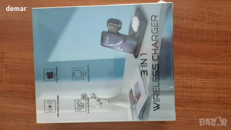 Безжично зарядно устройство 3 в 1 за iPhone, Apple Watch, AirPods (с адаптер )