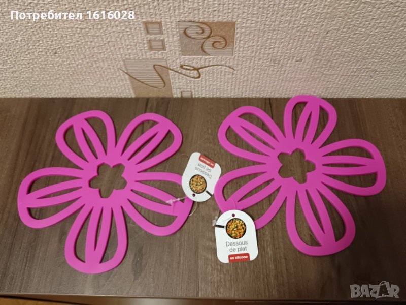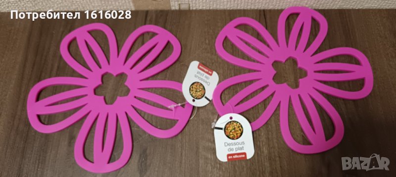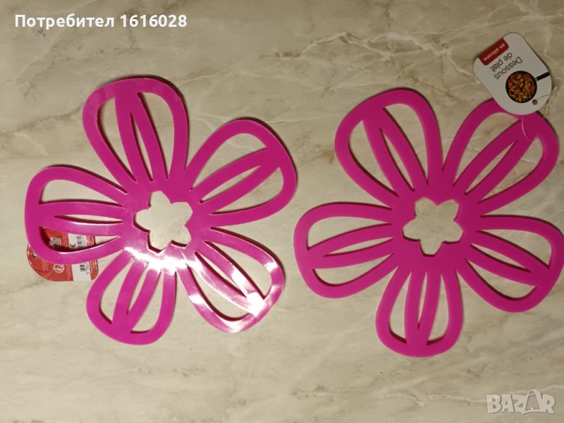 Комплект от 2 силиконови протектора за тенджери и тигани, Цвете с размери 19 см,Красиви розови цветя за защита на тенджери и тигани. Когато поставите горещи тенджери и тигани на масата или шкафът ще избегнете изгаряния! Комплект от 2 силиконови подложки, с красив дизайн с цветя - идеалната основа за сервиране на гювечета и защита на масата. Но и красива декорация за маса и скрин.